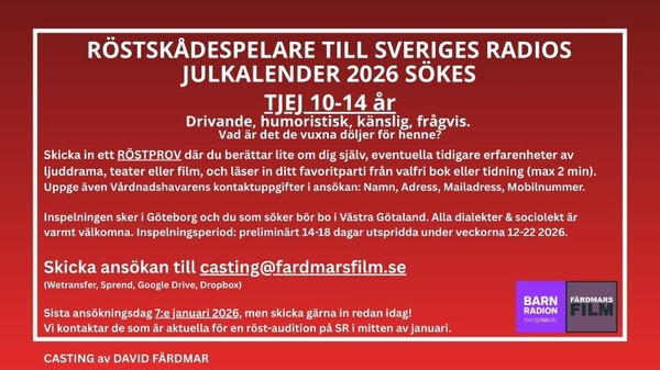 Röstskådespelare sökes till Sveriges radios julkalender 2026.
