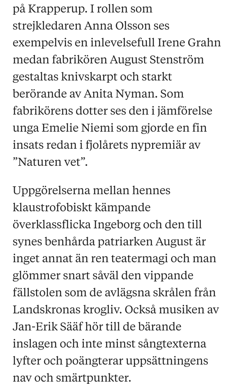 | R3 - en trumpen komedi | Amatörskådespelare | Lady Ann | Kulturskolan i Landskrona | 2019 |