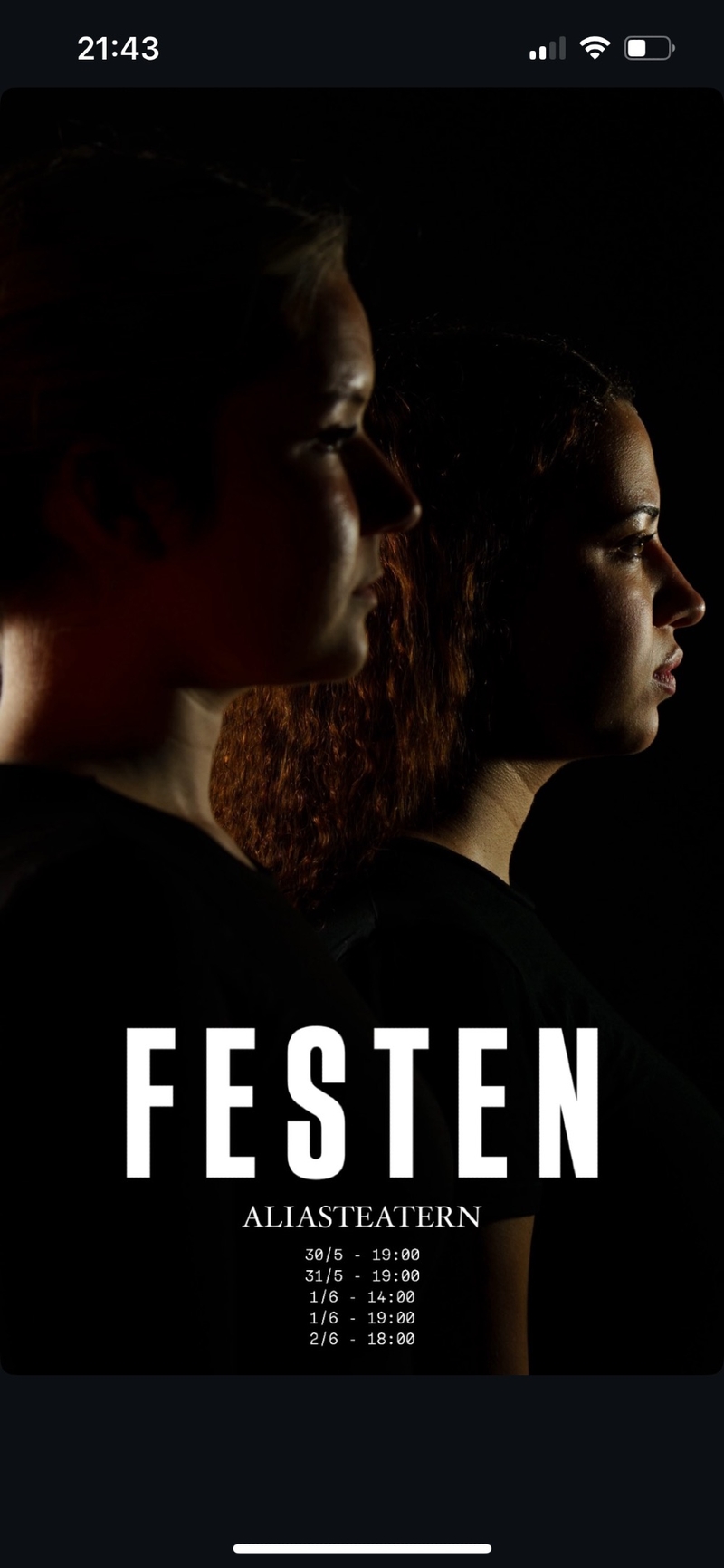 | FESTEN | Skådespelare | Christina/Linda | Slutproduktion Calle flygare teaterskola | 2025 |