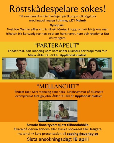 Vi söker nu två skådespelare till två små roller där endast rösten hörs.